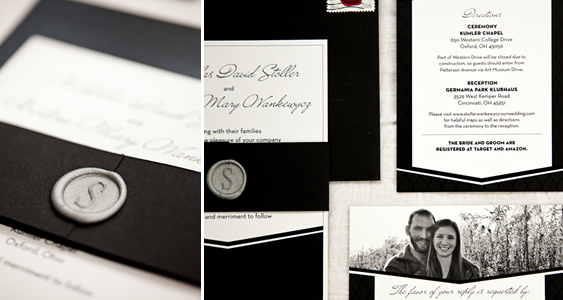 Chrissy and Nick share a very simple style, which they wanted to reflect in their wedding invitations. They also wanted to incorporate their black and white engagement photos as inspiration.